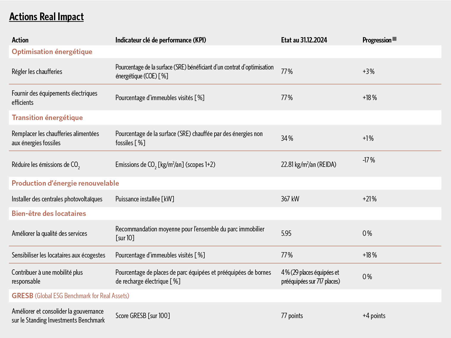 Actions concrètes, indices environnementaux et benchmark GRESB du groupe de placement Realstone Immobilier Résidentiel Suisse.